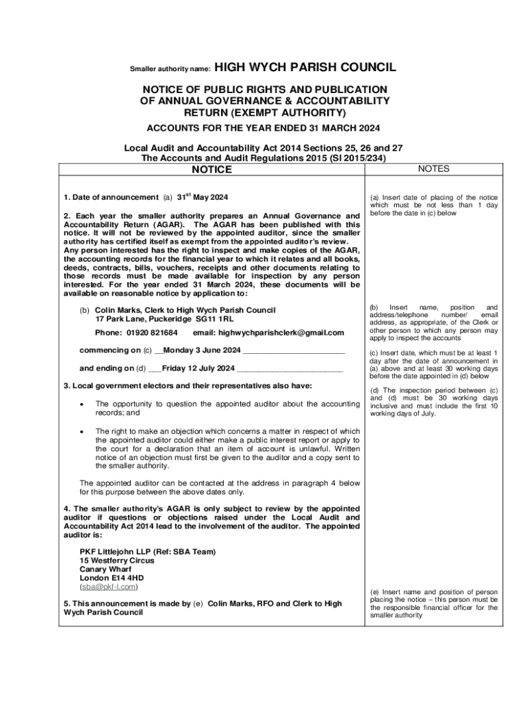 Get the free Notice of Public Rights for the Annual Governance & ...