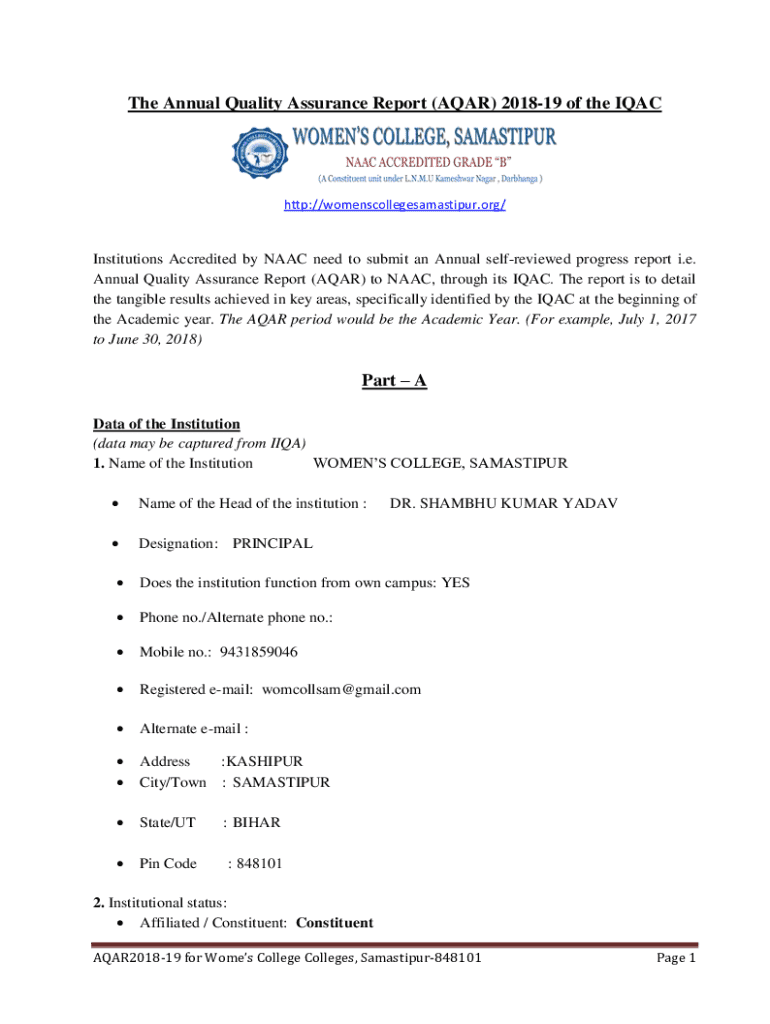 Get the free Annual Quality Assurance Report (aqar) 2018-19