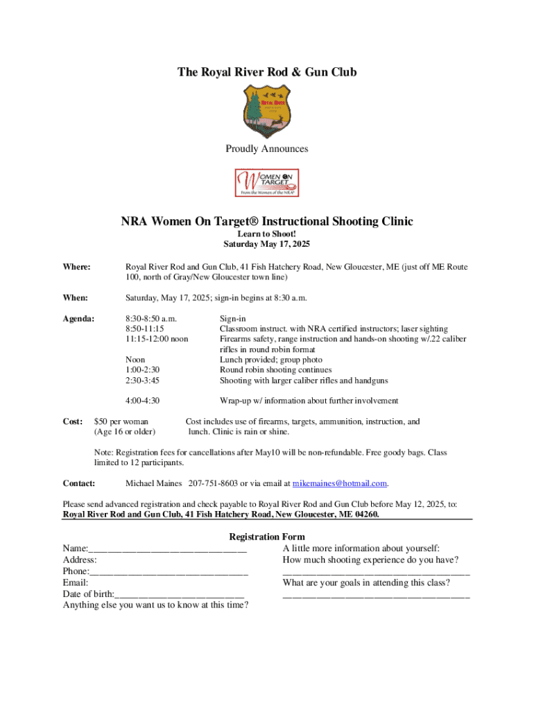 Understanding who needs to submit this form is straightforward: Any individual wishing to attend a Women on Target clinic or event must complete it. This ensures that instructors can tailor the experience according to the skill levels and interests of all participants, fostering a more effective learning environment.