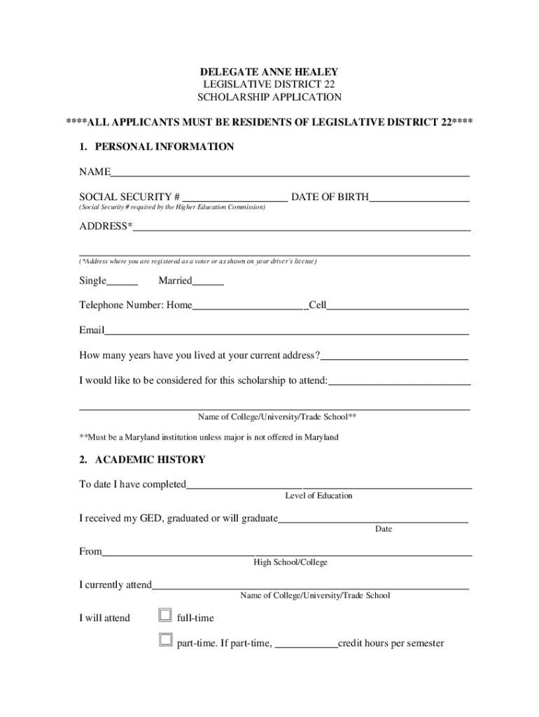 MD Delegate Anne Healey Legislative District 22 Scholarship Application 2021-2026 free printable template