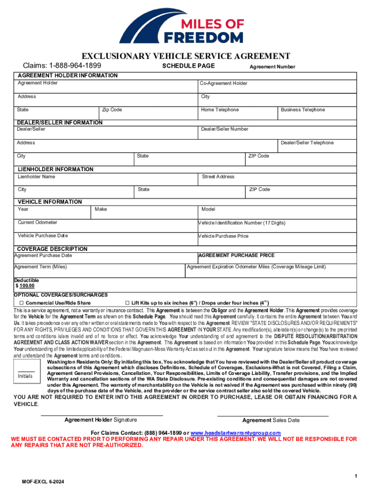 Exclusionary Vehicle Service Agreement Form: A Comprehensive Guide