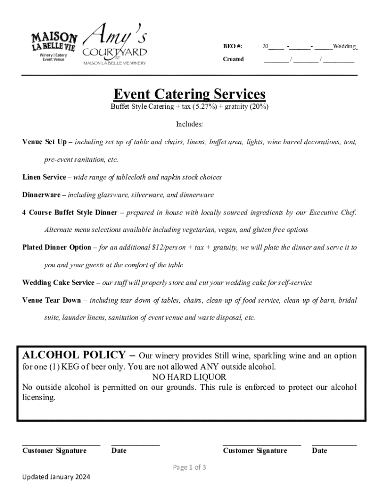 The buffet style catering tax form is a dedicated document that catering professionals must complete to comply with tax regulations. This form is pivotal in capturing all necessary financial details related to buffet-style events, which can include weddings, corporate gatherings, or other large functions. Accurate documentation not only ensures that tax obligations are met but also minimizes the risk of audits and penalties.