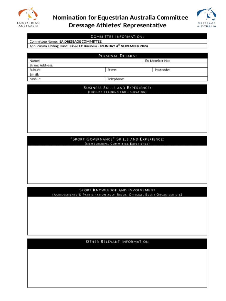 Nomination for Equestrian Australia Form: A Comprehensive Guide