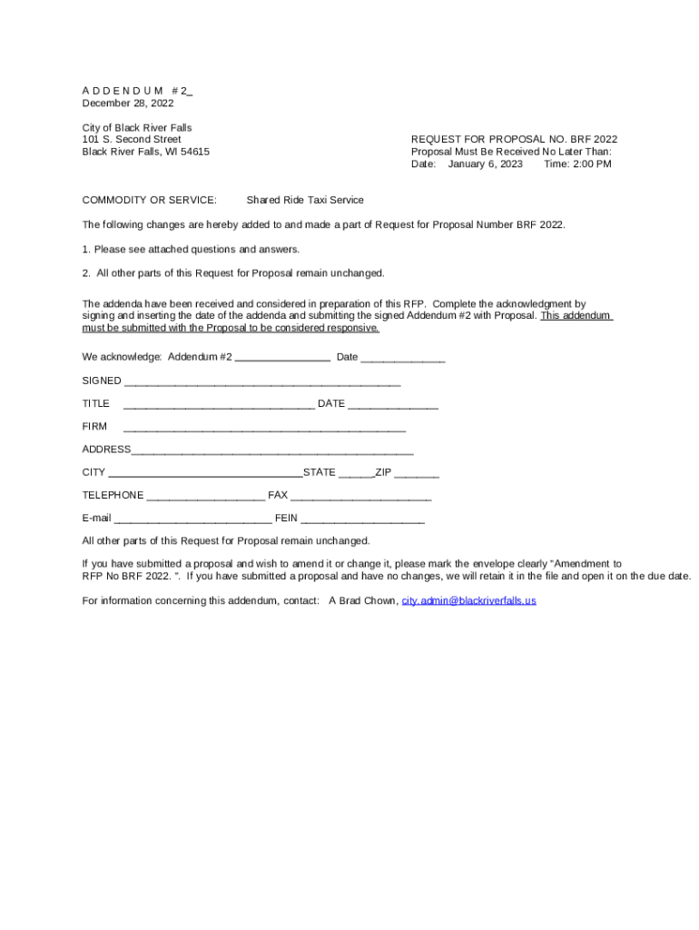 Title and Effective Date: Clearly specify the title as 'Addendum 2' with the date it takes effect.