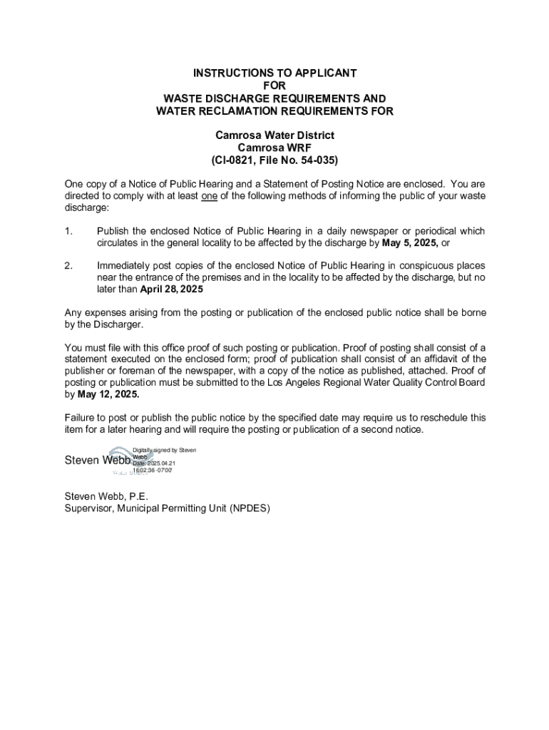Get the free Waste Discharge Requirements and Water Reclamation Requirements for Camrosa Water Di...
