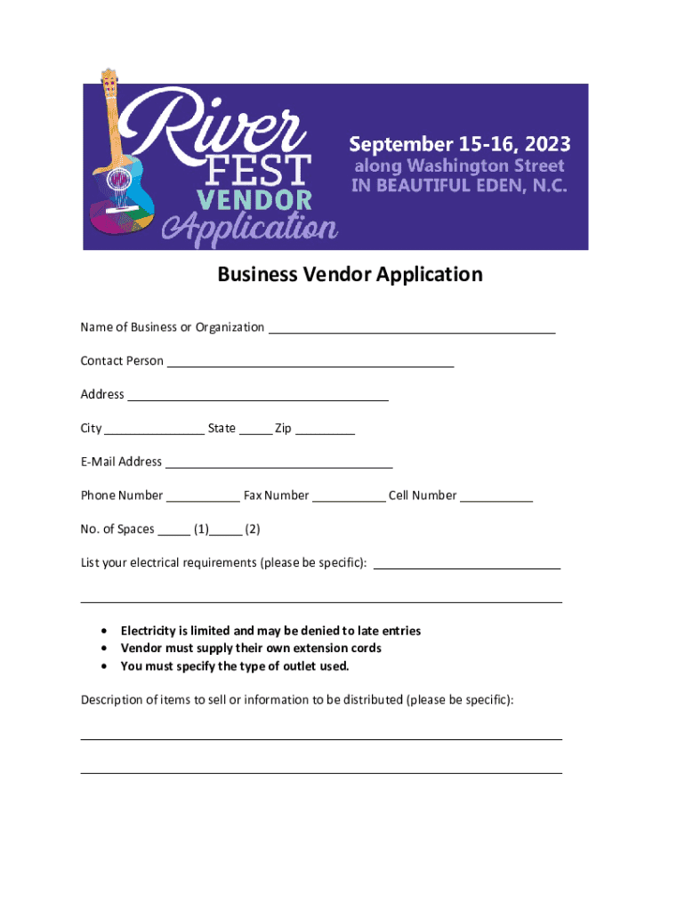 Get the free Business Vendor Application
