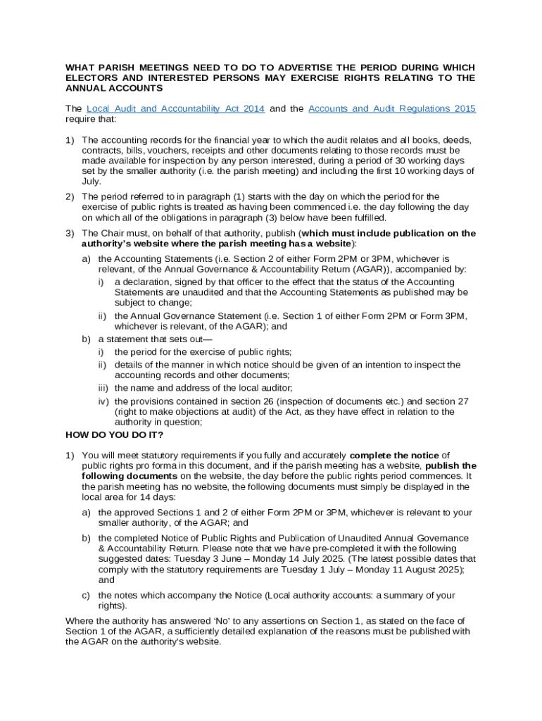 Instructions for the Notice of Public Rights and Publication of Unaudited Annual Governance & Accountability Return form