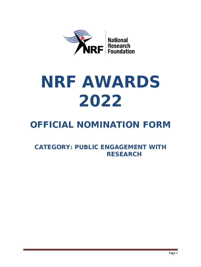 Instructions for the Nrf Awards 2022 Official Nomination form