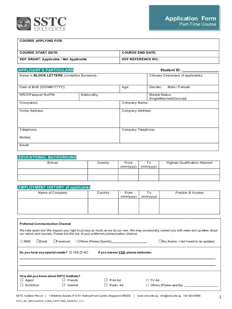 Get the free Application Form Part-time Course - sstc edu