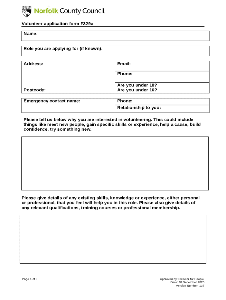 The significance of this form extends beyond a mere application; it plays a pivotal role in effective volunteer management. By centralizing information, the f329a helps organizations filter suitable candidates, ensuring that roles are filled by individuals whose skills and experiences align with organizational needs.