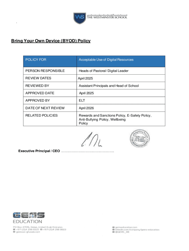 Get the free Byod Policy