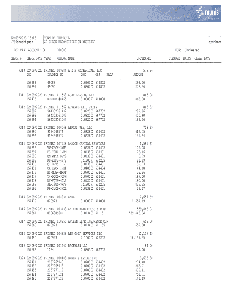 Get the free Ap Check Reconciliation Register