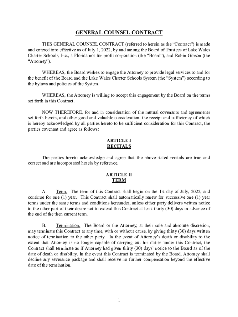 Get the free General Counsel Contract
