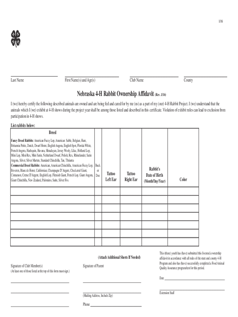 How to fill out nebraska 4-h rabbit ownership