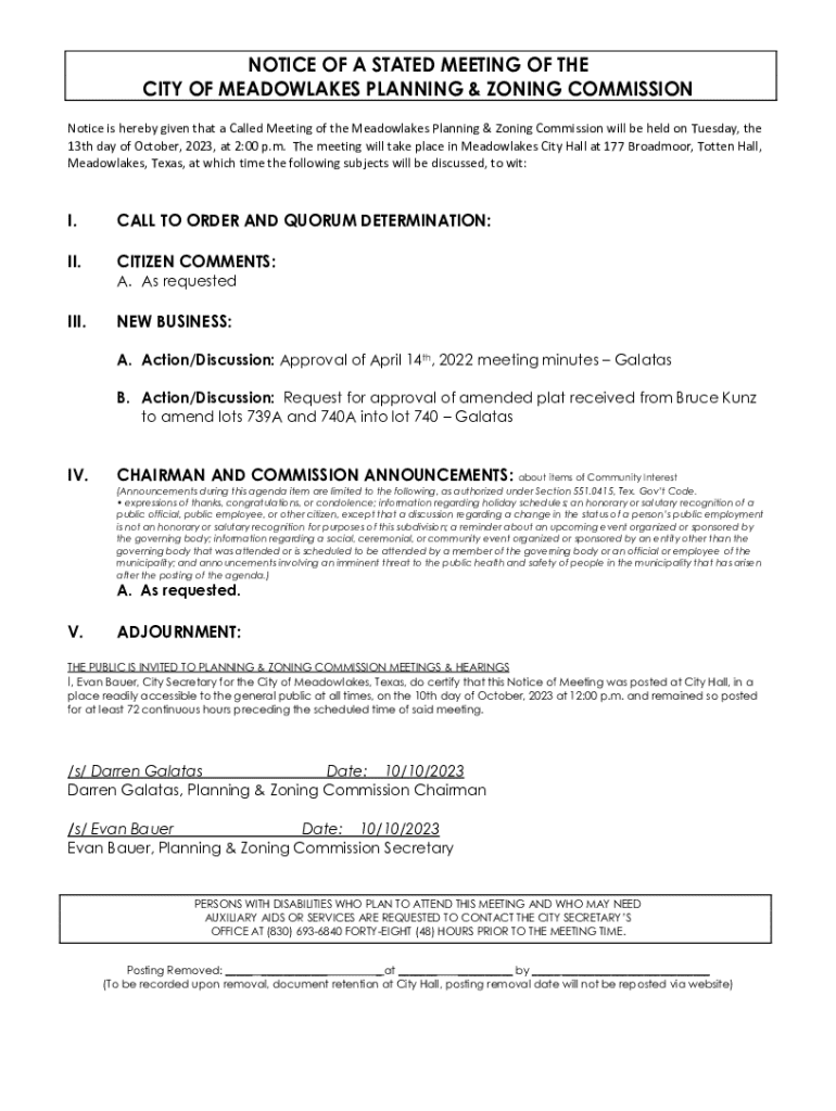 Get the free Notice of a Stated Meeting