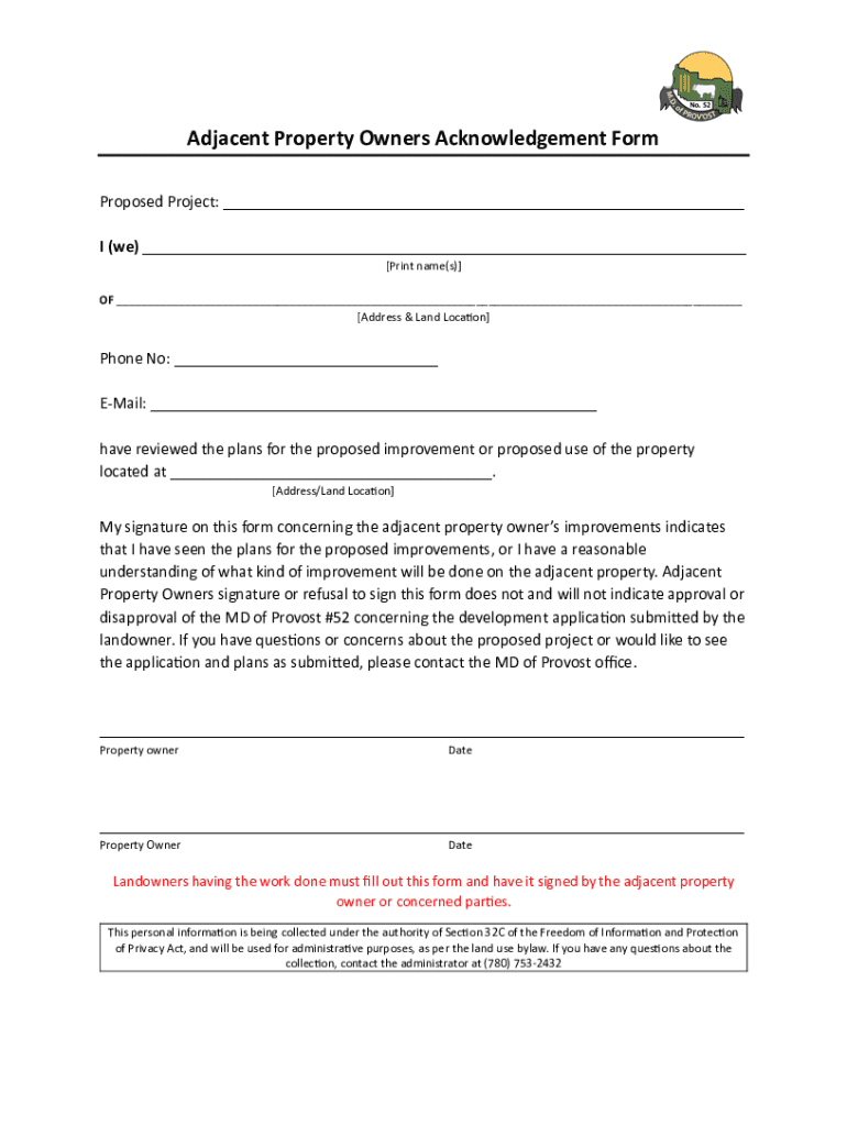 A comprehensive guide to the adjacent property owners acknowledgement form