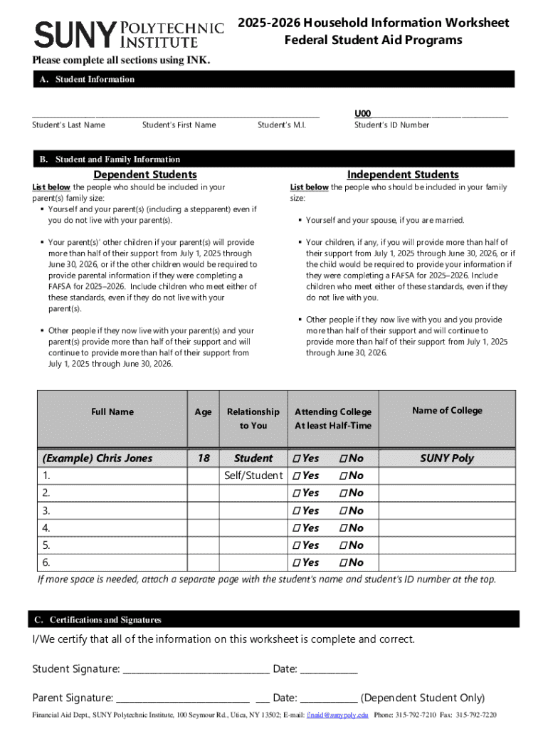 How to fill out 2025-2026 household information worksheet