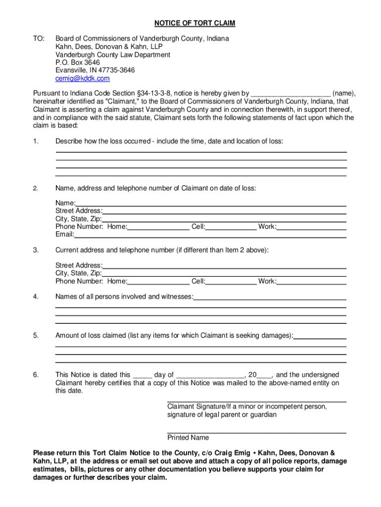 Get the free Notice of Tort Claim