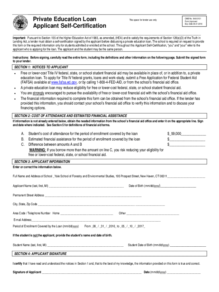 Get the free Private Education Loan Applicant Self-certification - environment yale