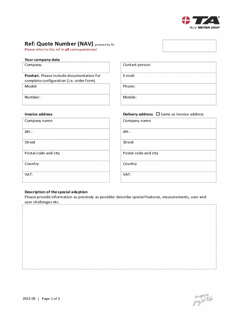 Next, the customization requirements section is critical as it details specific alteration requests. Customers can specify color choices, material preferences, and any size specifications tailored to their unique needs. Finally, the customer information section collects contact information and shipping details, ensuring the business can deliver the customized product efficiently.