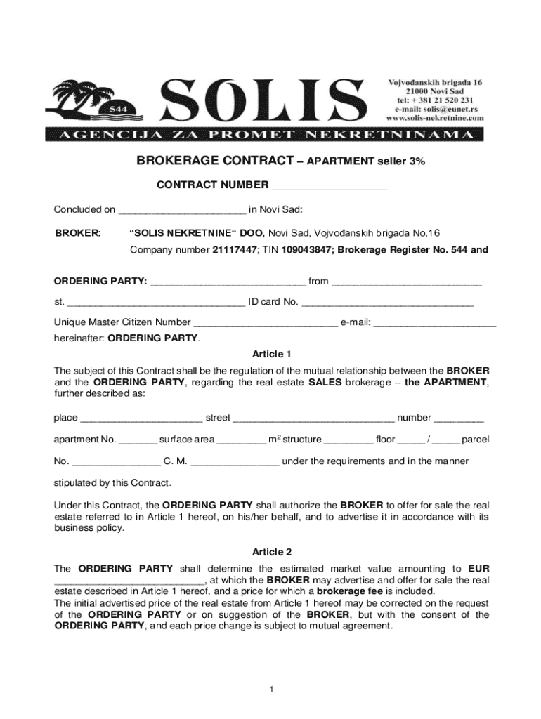 Understanding the essential components of a brokerage contract is vital for any seller looking to market their apartment effectively. The document typically includes critical sections like the identification of involved parties, property description, and contractual obligations.