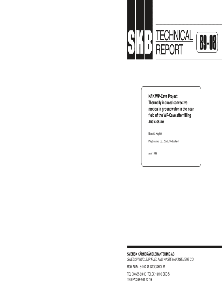 This technical report presents a study conducted on thermal convective motion induced in groundwater due to decay heat in the WPCave repository. It discusses numerical models used to forecast the
