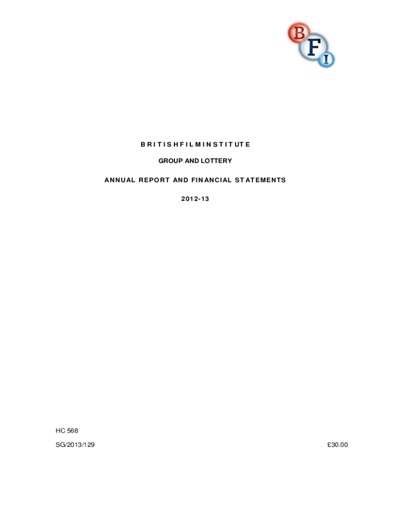 Get the free British Film Institute Group and Lottery Annual Report and Financial Statements 2012-13