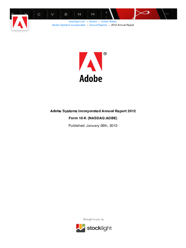 The Adobe Systems Incorporated Annual Form serves as a comprehensive document detailing the company’s financial performance, operational achievements, and strategic initiatives over the past year. This Essential report not only provides insights into Adobe’s profitability but also outlines its fiscal strategy, market conditions, and future outlook, making it indispensable for investors, analysts, and stakeholders.