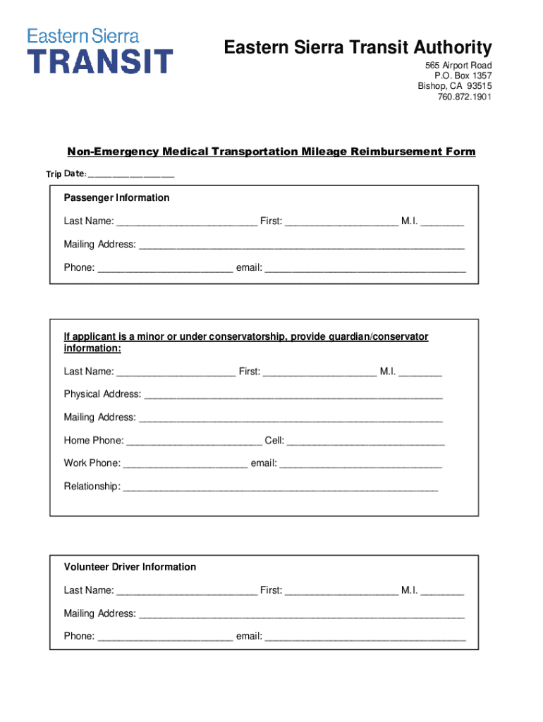 Get the free Non-emergency Medical Transportation Mileage Reimbursement Form
