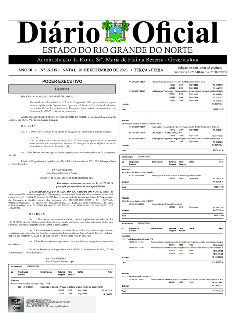 Dirio OficialNatal, 26 de setembro de 2023Dirio Oficial do Estado do Rio Grande do NorteAno 90N 15.5151ESTADO DO RIO GRANDE DO NORTEAdministrao da Exma. Sr. Maria de Ftima BezerraGovernadora ANO 90