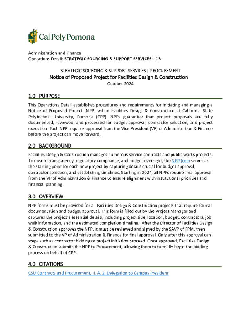 Get the free Notice of Proposed Project for Facilities Design & Construction