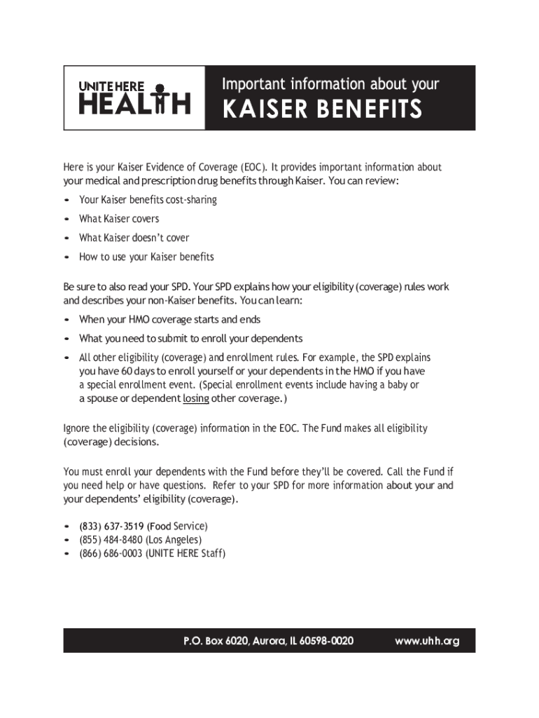 The Kaiser Benefits Form is a crucial document for Kaiser Permanente members, designed to facilitate the management of healthcare benefits. This form is essential for enrolling in or modifying your health plans, determining eligibility for coverage, and making informed choices regarding benefits. Accurate completion of the form ensures that you receive the health services you need while maintaining efficient coordination between your employment and health insurance.