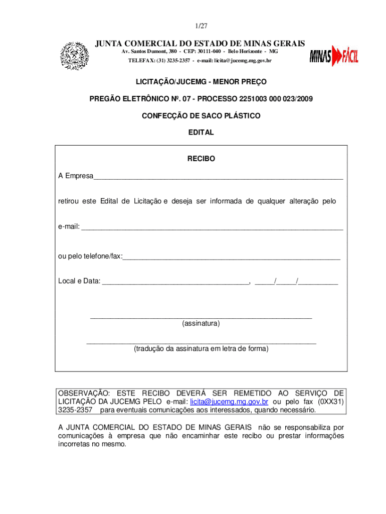 Obtenha o gratuito Pregão Eletrônico Nº 07 - Processo 2251003 000 023/2009