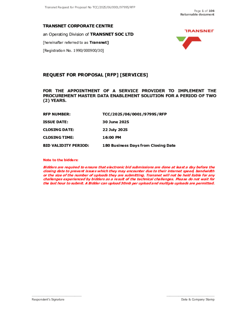 Get the free Transnet Request for Proposal No Tcc/2025/06/0001/97995/rfp
