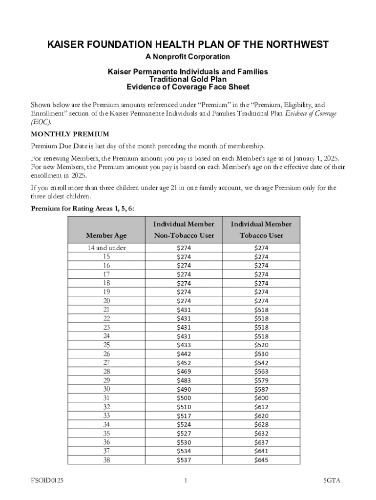 Get the free Kaiser Permanente Individuals and Families Traditional Gold Plan Eoc