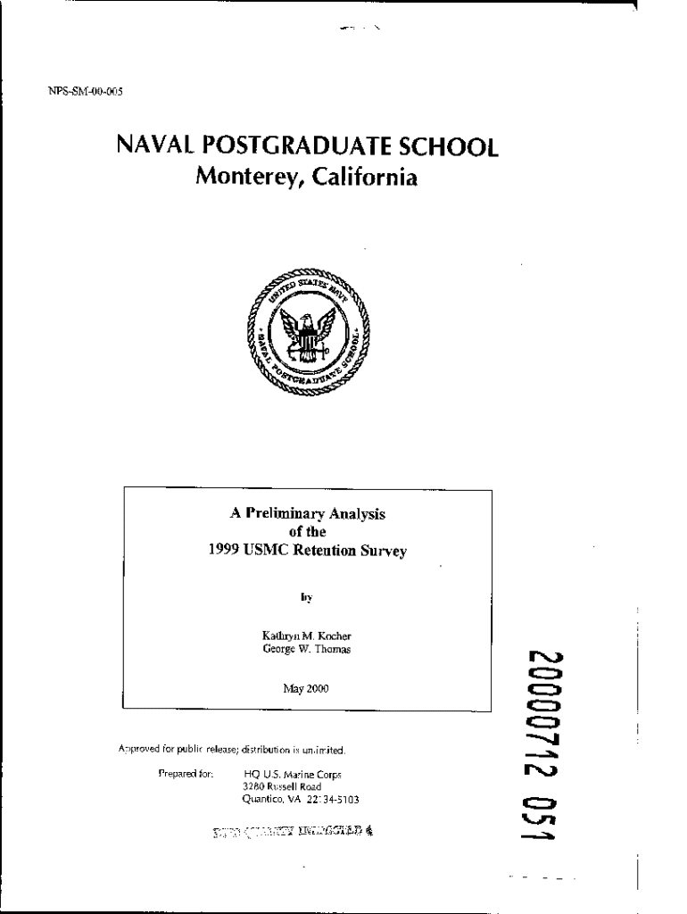This report presents a preliminary analysis of data collected from an internetbased survey designed to identify the factors influencing retention decisions among U.S. Marines. The analysis covers