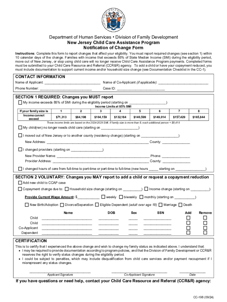 Get the free New Jersey Child Care Assistance Program Notification of Change Form