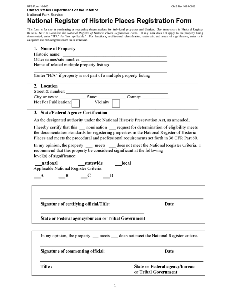 The NPS Form 10-900 is a pivotal document used in the process of nominating properties to the National Register of Historic Places. This form plays a crucial role in the preservation of historical sites, providing a formal mechanism for recognizing and protecting places of cultural significance. It stipulates how properties are evaluated according to criteria set by the National Park Service (NPS), thus enabling property owners and stakeholders to engage in the preservation process.