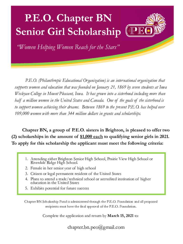 Get the free P.e.o. Chapter Bn Senior Girl Scholarship Application