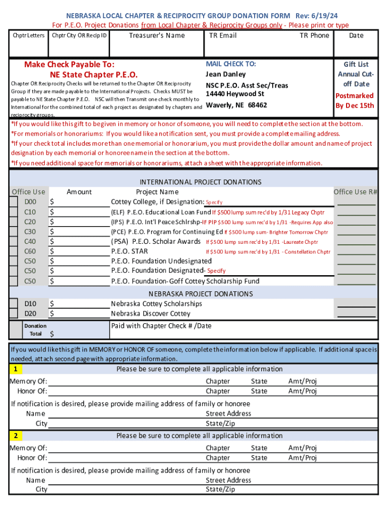 Get the free Nebraska Local Chapter & Reciprocity Group Donation Form