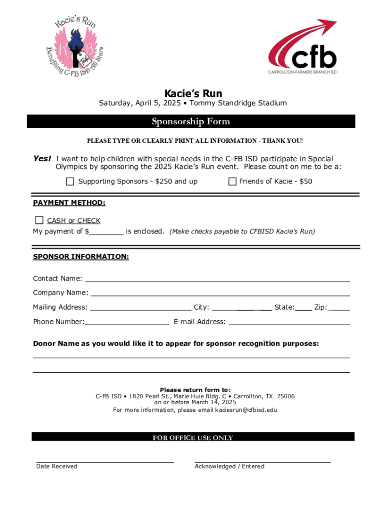 The Kacie's Run form is an essential document that participants need to complete to successfully register for the event. This form captures vital information that helps event organizers ensure a smooth experience for everyone involved. It is crucial for ensuring readiness and accountability, from tracking participant numbers to managing t-shirt sizes and emergency contacts.