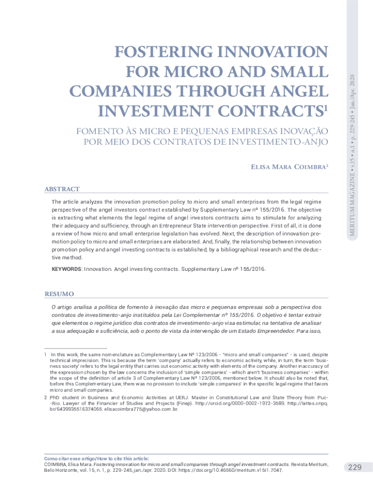 Get the free Fomento Às Micro E Pequenas Empresas InovaÇÃo Por Meio Dos Contratos De Investimento...