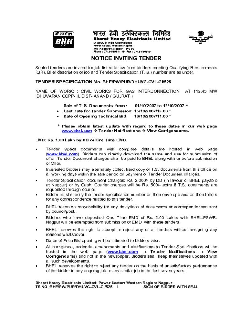 Get the free Notice Inviting Tender