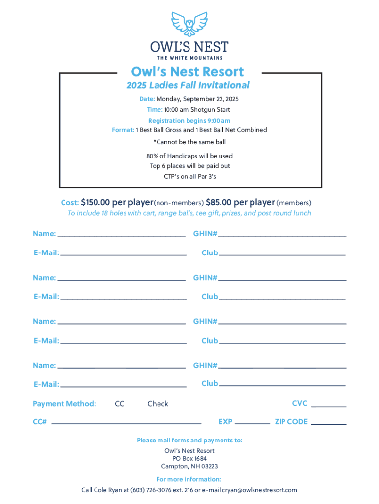 Get the free Owl’s Nest Resort 2025 Ladies Fall Invitational