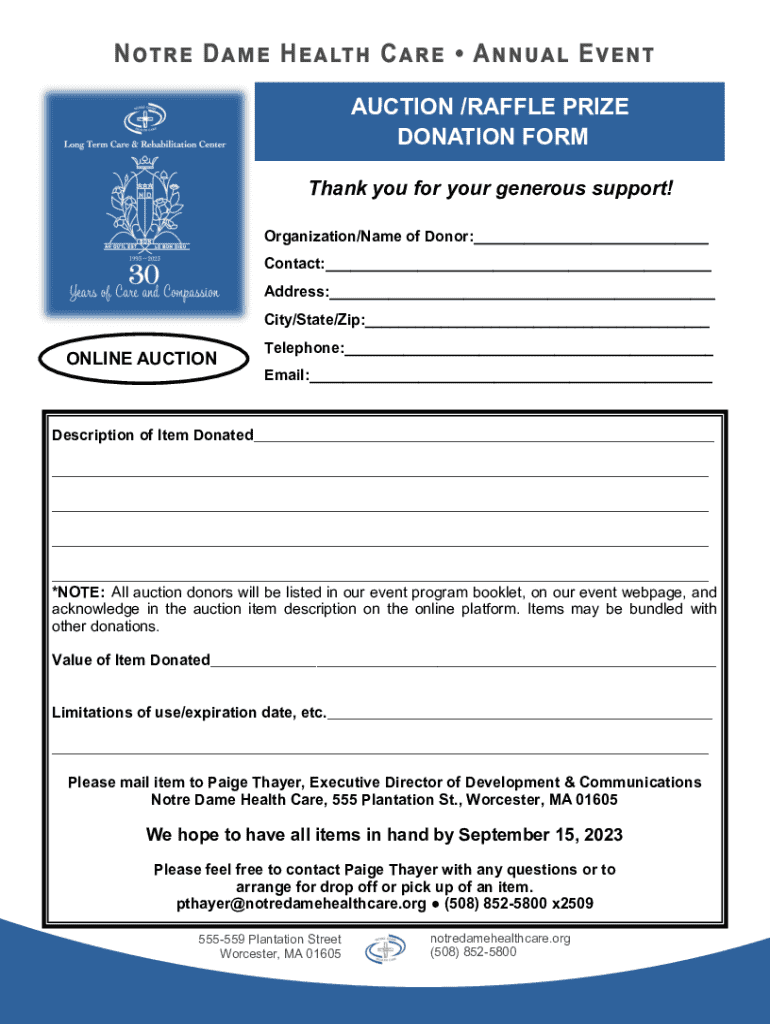Get the free Auction/raffle Prize Donation Form