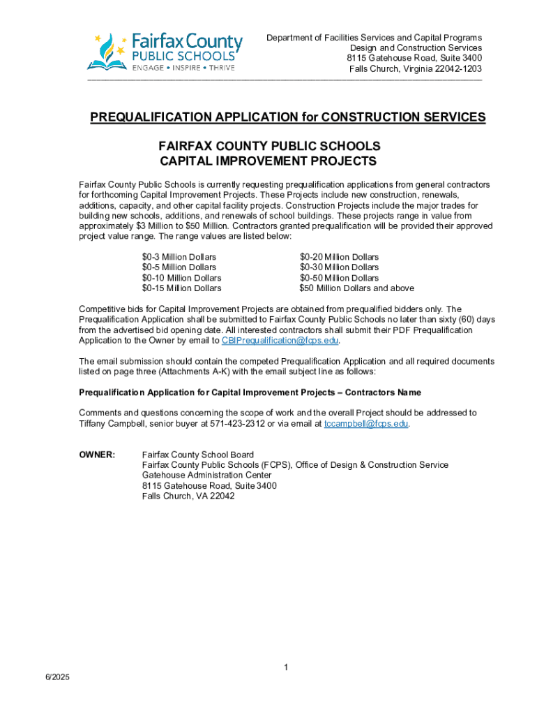 Get the free Prequalification Application for Construction Services