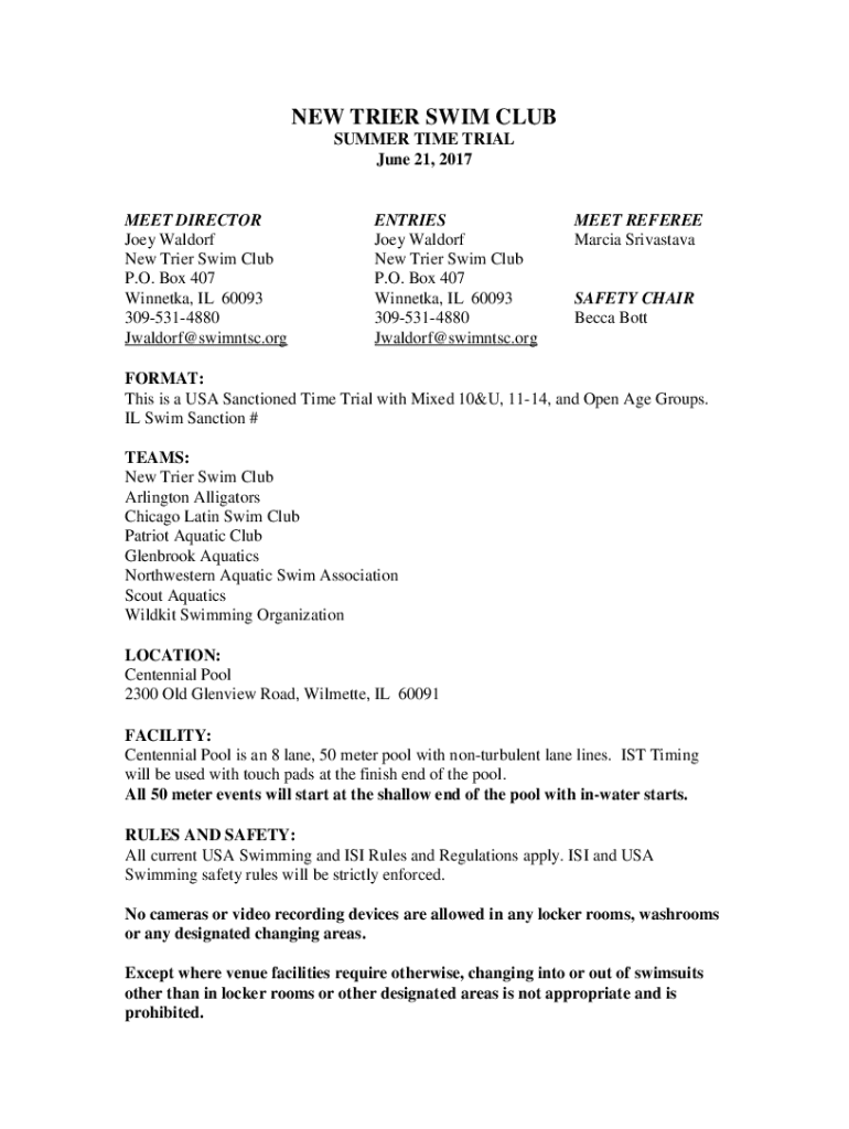 Get the free New Trier Swim Club Summer Time Trial