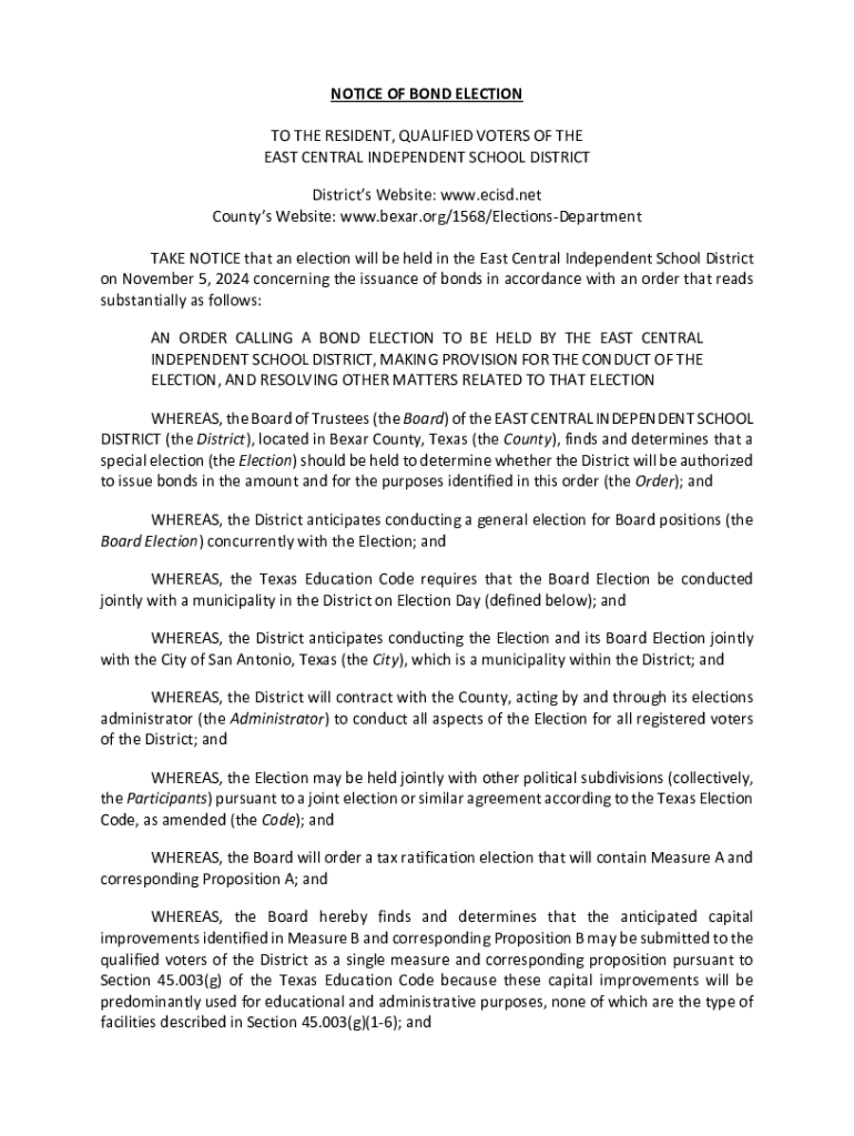 The importance of this form cannot be overstated—bond elections often involve significant financial commitments that affect community services, infrastructure, and local budgets. As such, the Notice of Bond Election serves as a formal communication tool that helps constituents make informed decisions about their voting.