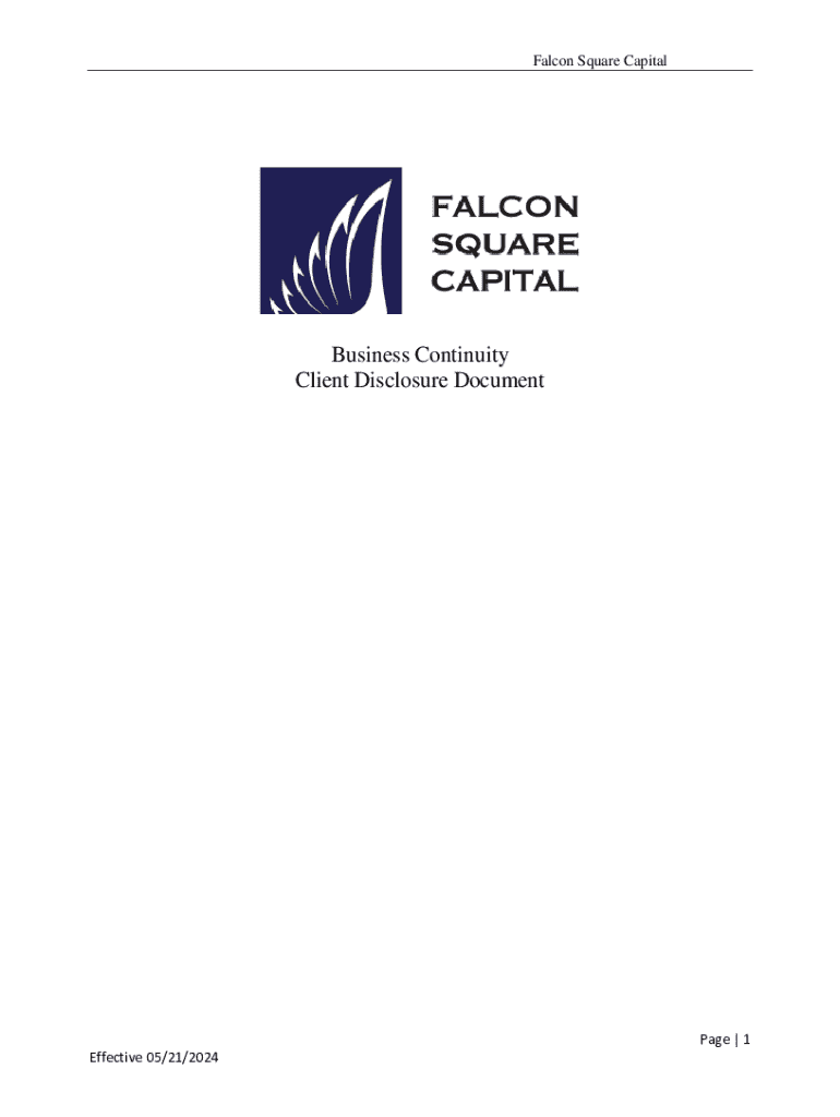 Get the free Falcon Square Capital Business Continuity Client Disclosure Document