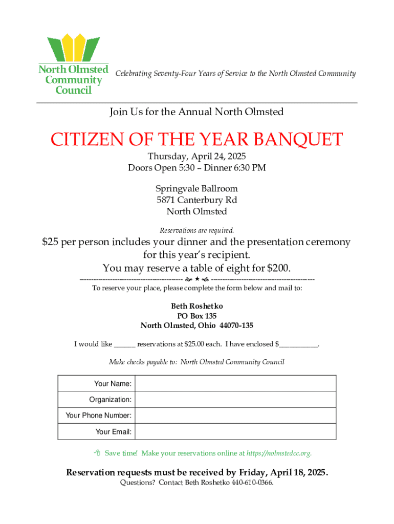 Get the free North Olmsted Citizen of the Year Banquet canceled